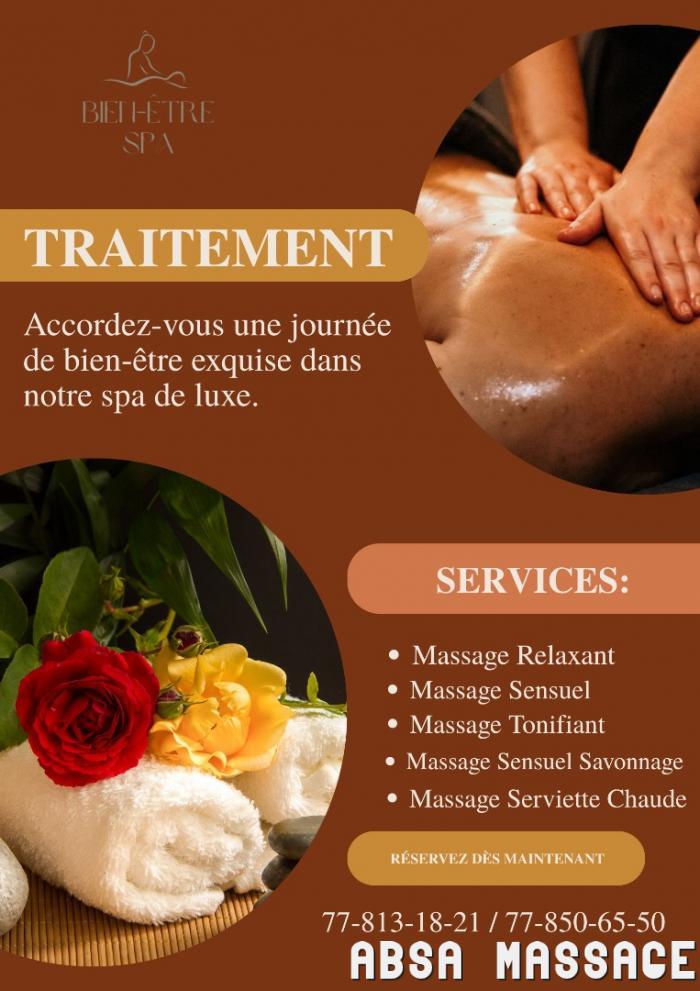 Nous vous proposons des séances inoubliables accompagné de belles masseuses: 771222744Massages Nous proposons une gamme de massages adaptés à vos besoins et préférences, tels que le massage suédois, le massage des tissus profonds, le massage thaïlandais, le massage aux ...